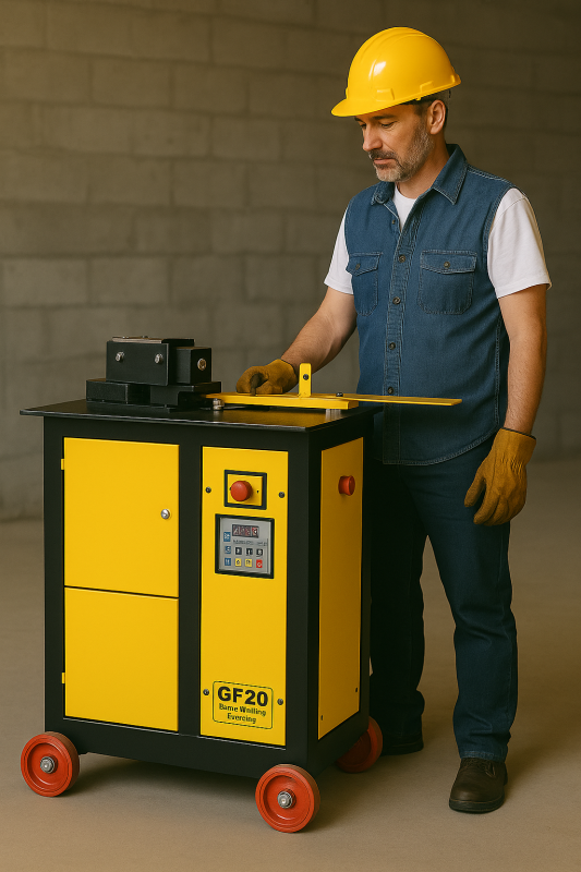The GF 20 Ring Making Machine is a robust and highly efficient tool designed specifically for the precise bending of steel bars and TMT bars to create a variety of shapes, primarily for producing stirrups and reinforcement rings. This semi-automatic machine is an indispensable asset for construction sites, precast concrete factories, and steel fabrication workshops where uniform and high-volume production of reinforcement is required.