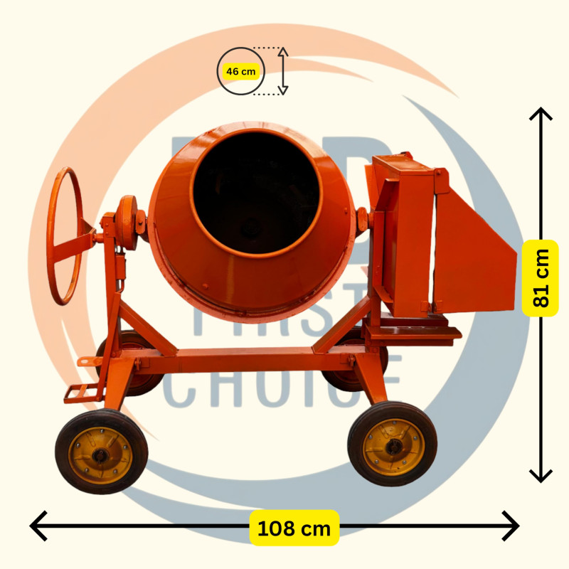 The IND FIRST CHOICE Concrete Mixer Machine with 250 Ltr half bag capacity and four-wheel portability is designed for efficient, heavy-duty, and reliable cement mixing at construction sites, industrial projects, and civil works. Built with a durable mixing drum and multiple motor power options, this concrete mixer ensures smooth mixing, easy transport, and long-lasting performance for demanding applications.