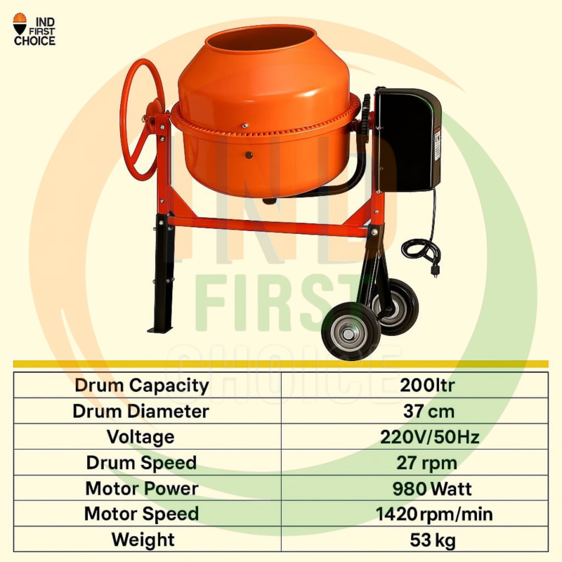 The IND FIRST CHOICE Concrete Mixer Machine with 260 LTR capacity is engineered for efficient, reliable, and heavy-duty cement mixing in construction sites, industrial flooring, and civil engineering works. Designed with robust construction and multiple motor power options, this concrete mixer ensures smooth operation, long-lasting performance, and consistent mixing quality for demanding construction projects.