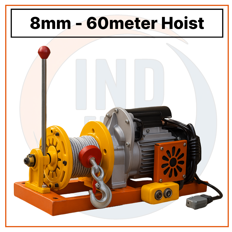 The IND FIRST CHOICE Heavy Duty Clutch Winch with pure copper motor and 8mm x 60m wire rope is designed for safe, efficient, and reliable lifting operations in construction sites, warehouses, and industrial facilities. Built with heavy-duty construction and high-quality components, this clutch winch ensures smooth lifting performance, durability, and operator safety for demanding industrial applications.