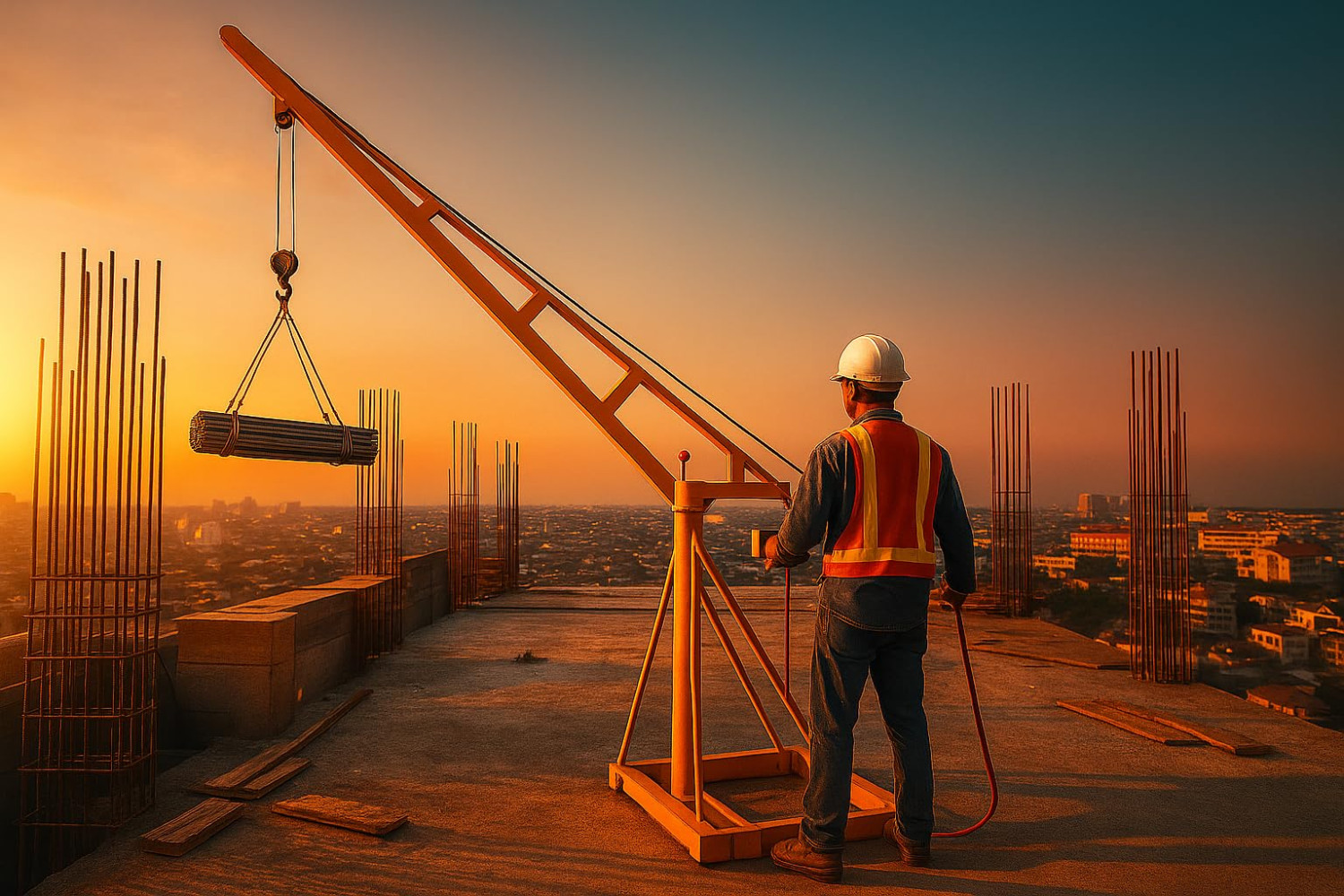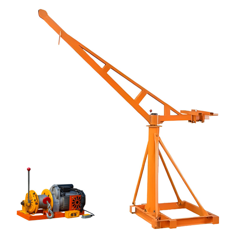 This mini construction crane offers a cost-effective, portable, and durable lifting solution for construction and industrial material handling needs.