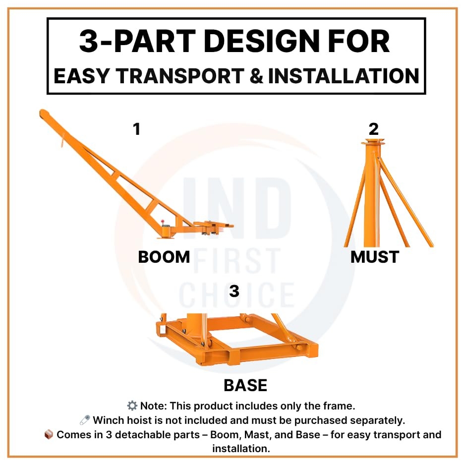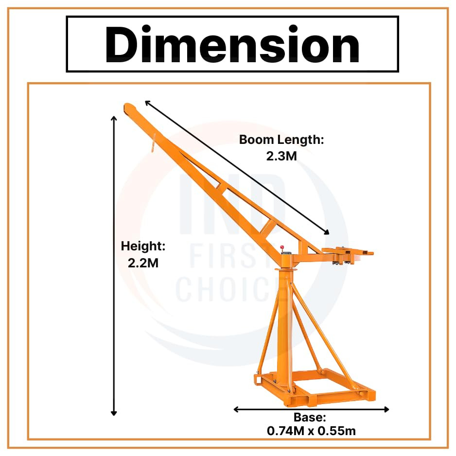 The IND FIRST CHOICE Mini Construction Crane with 360° rotating boom and 65 Kg frame is designed for safe, efficient, and portable material lifting at construction sites, warehouses, and industrial facilities. Featuring sturdy yet lightweight construction, this mini crane ensures easy transport, reliable performance, and long-lasting durability for demanding lifting applications.