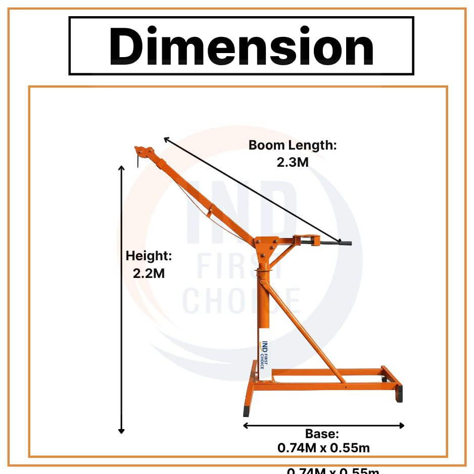The IND FIRST CHOICE Mini Construction Crane with 360° rotating boom and 75 Kg frame is designed for efficient, safe, and portable material lifting at construction sites, warehouses, and industrial facilities. With heavy-duty construction and a lightweight yet durable frame, this mini crane ensures easy handling, reliable performance, and long service life for material lifting operations.