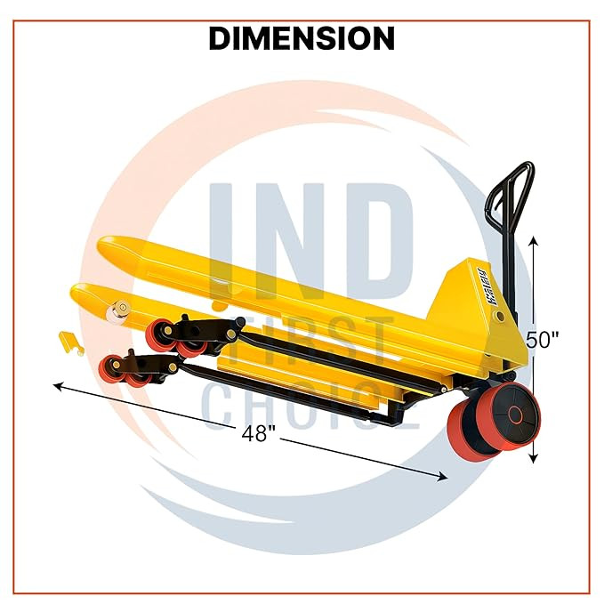 Its ergonomic handle design and heavy-duty nylon wheels allow for easy maneuverability with minimal effort, reducing operator fatigue while maintaining productivity. Whether used in warehouses, industrial plants, or logistics operations, this pallet truck is the perfect solution for efficient and long-lasting material handling.